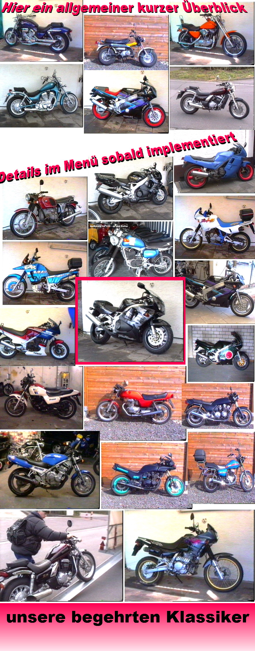 Vorab ein Überblick aus bisherigem Programm neuere Kräder folgen....
